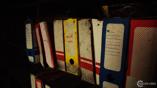 Arrivés dans une pièce au fin fond du bâtiment, un petit escalier camouflé s’est présenté à nous, menant directement à un grenier tout à fait glauque, mais présentant énormément d’objets et dossiers sur les anciennes activités du site, que ce soit de l’usine ou le centre de jeunesse. On a clairement l’impression de passer dans un autre bâtiment quand on arrive dans ce grenier.