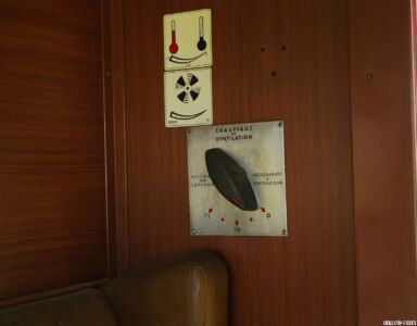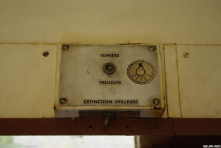 Coincé entre rase campagne et quartier aisé, il se dresse malgré son état assez fièrement. Il est triste dans un sens, toutes les vitres sont brisées, beaucoup de fauteuils ont été arrachés, mais toutes les indications, la plupart des banquettes et les compartiments sont toujours là, dans leurs couleurs d’origines; ça reflète bien l’aspect années 1960. Ce qui m’étonne, c’est que les autres wagons, la grue, les porte-containers restent là aussi, rattachés au wagon.
