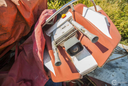 Sur une bonne partie du terrain, après le camion, on y trouvait un certain nombre de caravanes garés les unes contre les autres et complètement envahis par la végétation. Malheureusement, la plupart étaient remplies d’un bordel monstre qui rendait leurs accès presque impossible ou inintéressant. Par moment, nous tombions sur quelques vestiges de la ducasse, comme des décorations lumineuses rongées par la mousse, ou des remorques renfermant des jeux d’adresse. Et, par moment, nous trouvions ce qui semblait être d’anciens lots, et autres babioles abandonnées dans les hautes herbes.