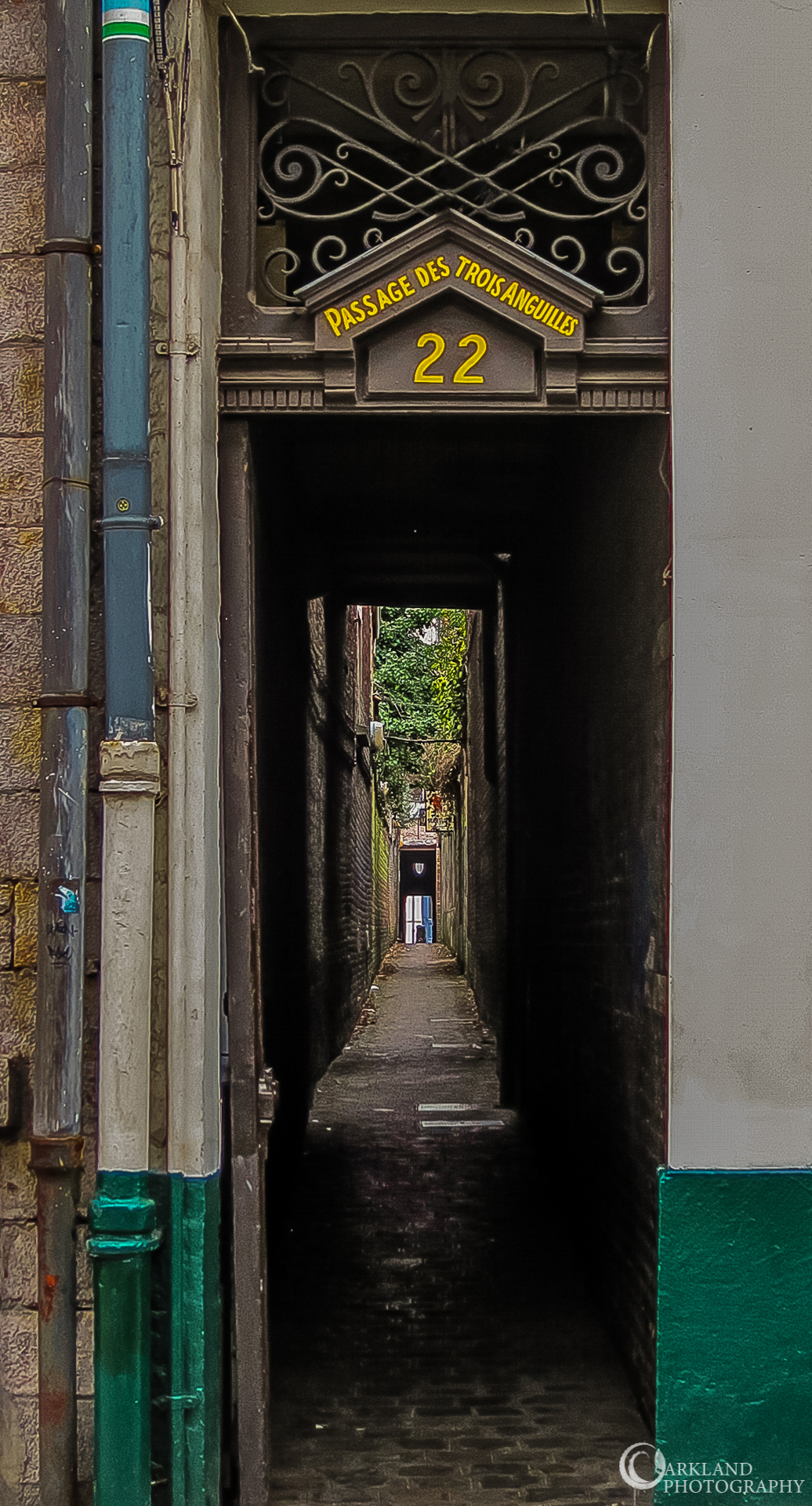 Ce passage est donc si étroit que beaucoup de piétons passent tous les jours devant sans jamais y prêter attention. D’un côté, il est bien indiqué par un joli petit portail aux écritures dorées, de l’autre, il est bien plus discret car il semble faire partie de la maison, mais est indiqué, subtilement, par trois petites aiguilles ondulés sculptées dans le grés. Possiblement le plus long passage de Lille avec ses 120 mètres de long pour un mètre vingt de large seulement.