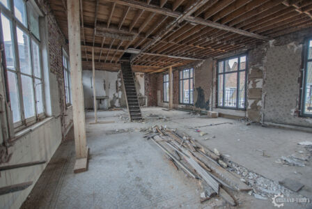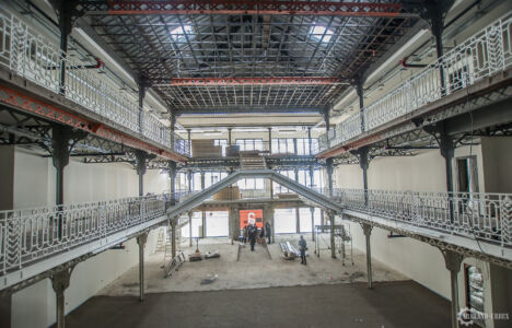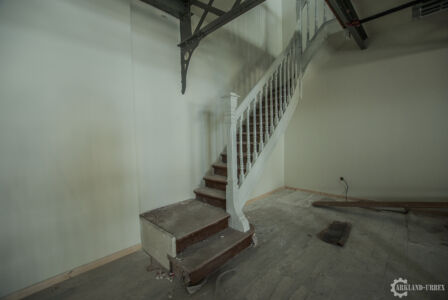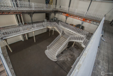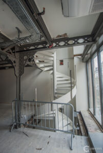 « Au delà des nombreux escaliers, le fer forgé rapporte une touche ancienne au renouveau futur de ce bâtiment. »