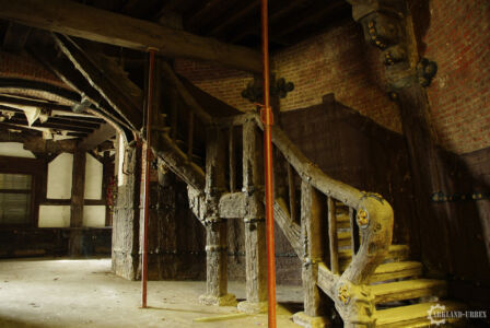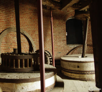 La fin de la visite se fit avec les étages, et donc l’intérieur complet du moulin, qui m’a impressionné par la conservation des « machineries. Malgré le petit risque, les barres métalliques n’était pas là pour rien.