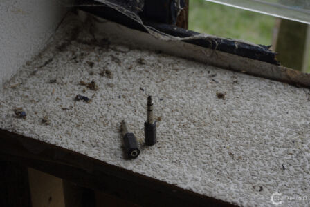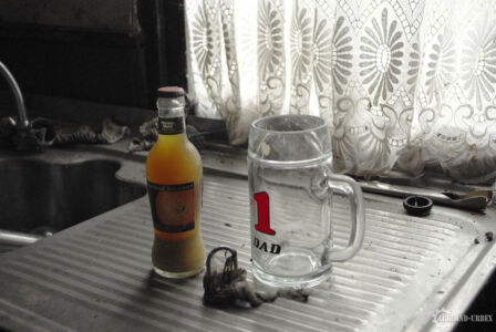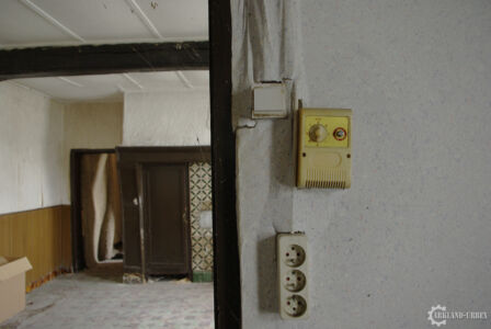 On y entre par ce qui semble être la porte du champs, on remarque dès les premières visions que la maison est très vide, seuls quelques objets rares restent sur les appuis de fenêtre et le comptoir du lavabo. La salle à manger et le salon sont dénués d’intérêt à part quelques petits détails. Au fond, une pièce nous intrigue, une fois à l’intérieur, on remarque que la porte peut être camouflée par un énorme morceau de tissu, mais en elle-même, toute la pièce est tapissée de tissu. Ce qui donne un bel aspect, ce qui est bien dommage, c’est qu’elle soit beaucoup trop petite pour en tirer une belle photo, et nous n’avions pas de grand angle (très grand angle même dans ce cas, donc on en ressort avec quelques photos de détails. En face de la salle de bain, se trouve une pièce où on était complètement passé à côté tellement et misérablement qu’elle était camouflé par un autre beau de tissu qui servait de porte. Quelqu’un avait essayé de la rénover celle-ci mais en vain, elle reste aussi vide que le reste de la maison.