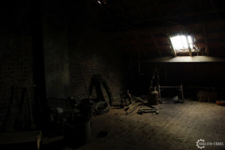 Contrairement à beaucoup de maison abandonnées, le grenier présentait un intérêt plutôt favorable par rapport au rôle complet de la maison, les granges et son terrain, plusieurs autres outils et harnais de chevaux de traits était présent, oublié et rongés par la poussière. Dans une des granges d’ailleurs, était présent une ancienne charrette en bois (jusqu’aux roues ! ) qui tenait encore bien debout!
