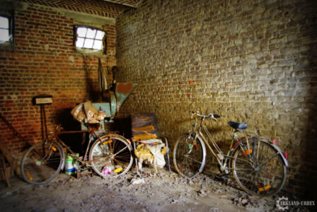 Et c’est peu rassurant, sachant qu’à l’époque de l’exploration, nous ne connaissions absolument pas cette histoire, qu’elle soit vrai ou non. Mais les ressentis étaient bien là eux. L’exploration commença par les deux pièces qui constituaient le garage, dont une devait servir pour les chevaux de trait, vu les abreuvoirs en béton. Dedans, beaucoup de choses, dont des vélos, des anciennes machineries électriques ou non, et autre.