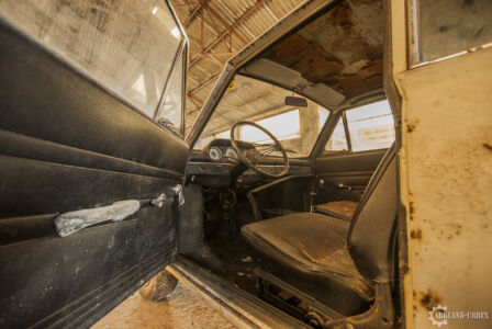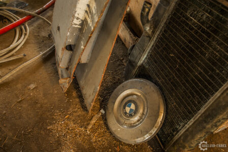 Après être passé juste devant et remarqué la R5 de 1984 laissée sur une remorque avec une pancarte « à vendre », nous nous sommes dirigé à l’arrière pour essayer de trouver une entré, ce qui nous permis assez facilement d’accéder à une première salle entièrement vide menant directement dans la salle principale du garage. Malgré une Glas 1304 et un voilier sur une remorque, le reste était très vide.