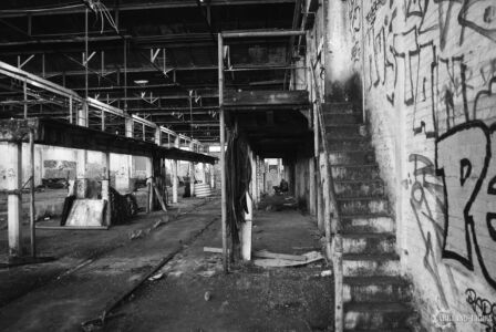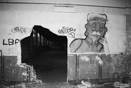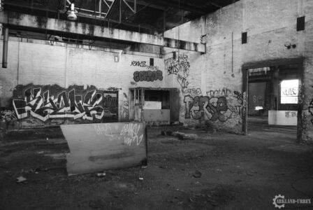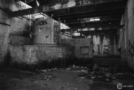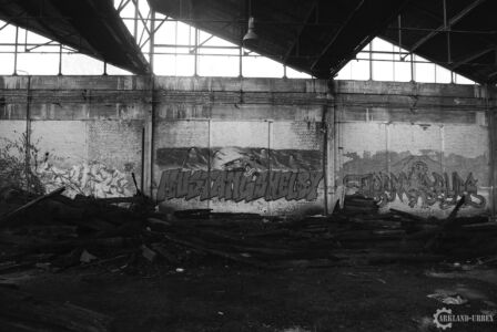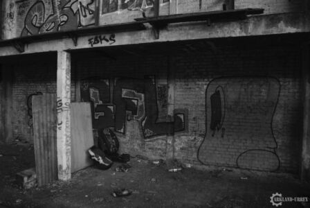 Plongé dans une mince forêt de petits arbre, cet hangar n’apparaît que très peu depuis la rue, mais il est quand même bien meurtri et tagué, il révèle tout de même quelques petites curiosités bien belles à voir et même à admirer comme dans une galerie d’art. L’exploration a été faite en fin de journée, et autant dire que ça donne un aspect bien spécial à de tels lieux, par rapport aux lumières qui y pénètre ou les bruits environnants.