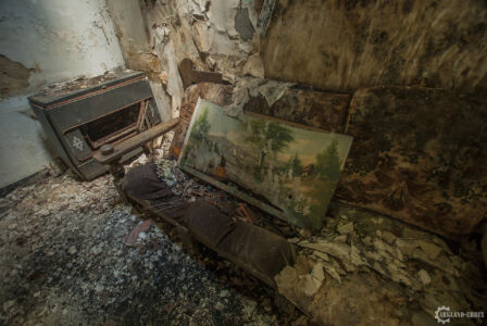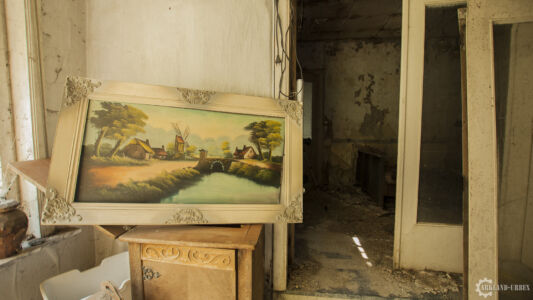 On pourrait s’arrêter sur l’état de dégradation avancé de cette demeure, mais cela donne un véritable cachet à l’ambiance et ce que donne la maison comme image, on est dirigé directement dans un temps dévasté où seule règne la végétation qui reprend ses droits à tous prix. Cet aspect est donc absolument magnifique et unique, on ne peut cesser d’observer chaque recoin où les couleurs des meubles et objets se marient avec la décrépitude, les champignons et la mousse environnante dans cette maison. Encore une fois c’est une demeure où l’on se demande pourquoi la personne a tout abandonné d’un coup comme ça suite à l’incendie, tout y est resté sans espoir que tout soit repris un jour. Une très belle exploration assez impressionnante avec l’accompagnement partiel d’un chat qui ne cessait de nous observer.
