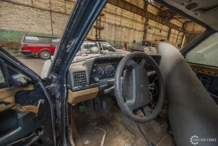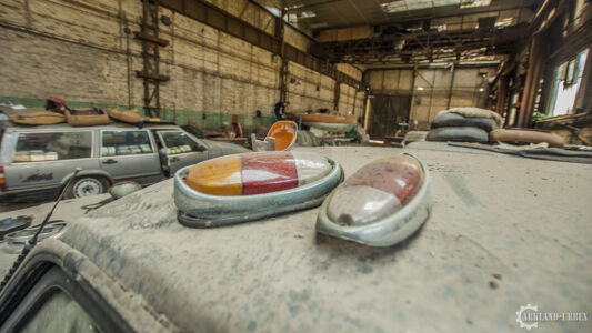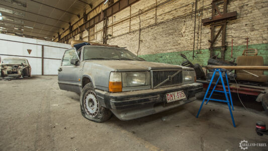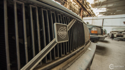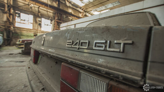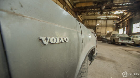 Après avoir passé un simple grillage à terre, nous avons dû escalader par une voie de fortune un mur d’environ trois mètres qui nous barrait le passage. Une fois passé, nous somme directement dans le vif du sujet. Des Volvo à foison dans un lieu enfermé depuis pas tant d’années que ça à en juger l’état de certaines autos.