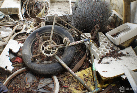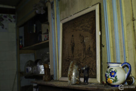 Considérée comme la maison rustique et intemporelle par excellence dans le coin, elle est là, abandonné depuis 2010, depuis que sa propriétaire est morte, et bien sûr, aucune nouvelle d’une quelconque famille héritière, pourtant beaucoup de photos sont présentes, dont une d’un mariage, le mystère règne. Du coup elle pourri dans sa vieillesse et l’humidité, l’accumulation d’objets n’aide pas.
