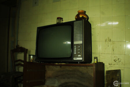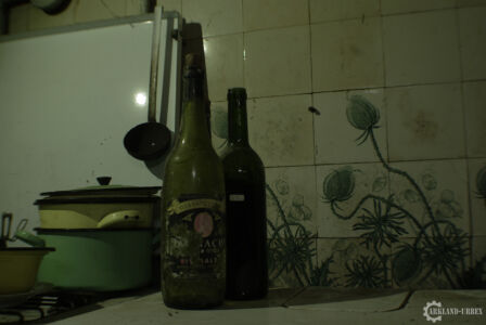 La suite se poursuit par l’intérieur de la maison, qui fait, dans un premier temps, une assez mauvaise impression, à la vue du nombre d’objet éparpillés un peu partout. Cependant, quelques uns étaient mis en valeur, comme les télévisions, les différentes bouteilles, ou livres, dont une bible assez flippante… L’utilisation de la lampe torche m’a beaucoup aidé car toute la maison est plongée dans le noir complet avec très peu de sources de lumière (pas l’idéal pour les photos des détails). La première pièce étant la cuisine, facilement reconnaissable avec tous les meubles encore présents, celle de droite devait être la salle à manger, assez grande et peuplée de divers bocaux à l’aspect étrange et dégueulasse; plusieurs tableaux, bibelots et autres curiosités étaient présents, dont une magnifique machine à coudre d’antan. La pièce à gauche de la cuisine n’a pas réservé autant de surprise, en vrac total, elle n’avait aucun potentiel photogénique… L’étage et le sous-sol étaient d’ailleurs inaccessibles, l’un inondé et l’autre ne possédant pas d’accès (escaliers écroulés)…