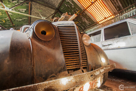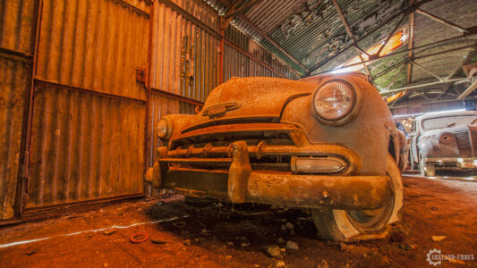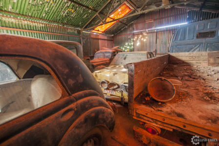 Comme toujours pour de tels spots, je ne suis jamais vraiment en confiance sur la route pour y aller, on est jamais sûr si tout y est toujours ou pas… Mais bon, dans ces cas là, il vaut toujours mieux se tromper. Je resterai, par ailleurs, toujours étonné que de telles autos restent à décrépir dans un hangar complètement perdu au milieu des champs, on se demande régulièrement pourquoi le propriétaire à laissé ça comme cela, et ce qu’il a bien pu se passer pour que tout reste dans cet état. Mais malheureusement nos questions demeureront surement sans réponse à jamais. Néanmoins,  ce fut une extraordinaire exploration, avec la découverte des habitacles des véhicules, qui, pour certains, étaient encore dans un superbe état.