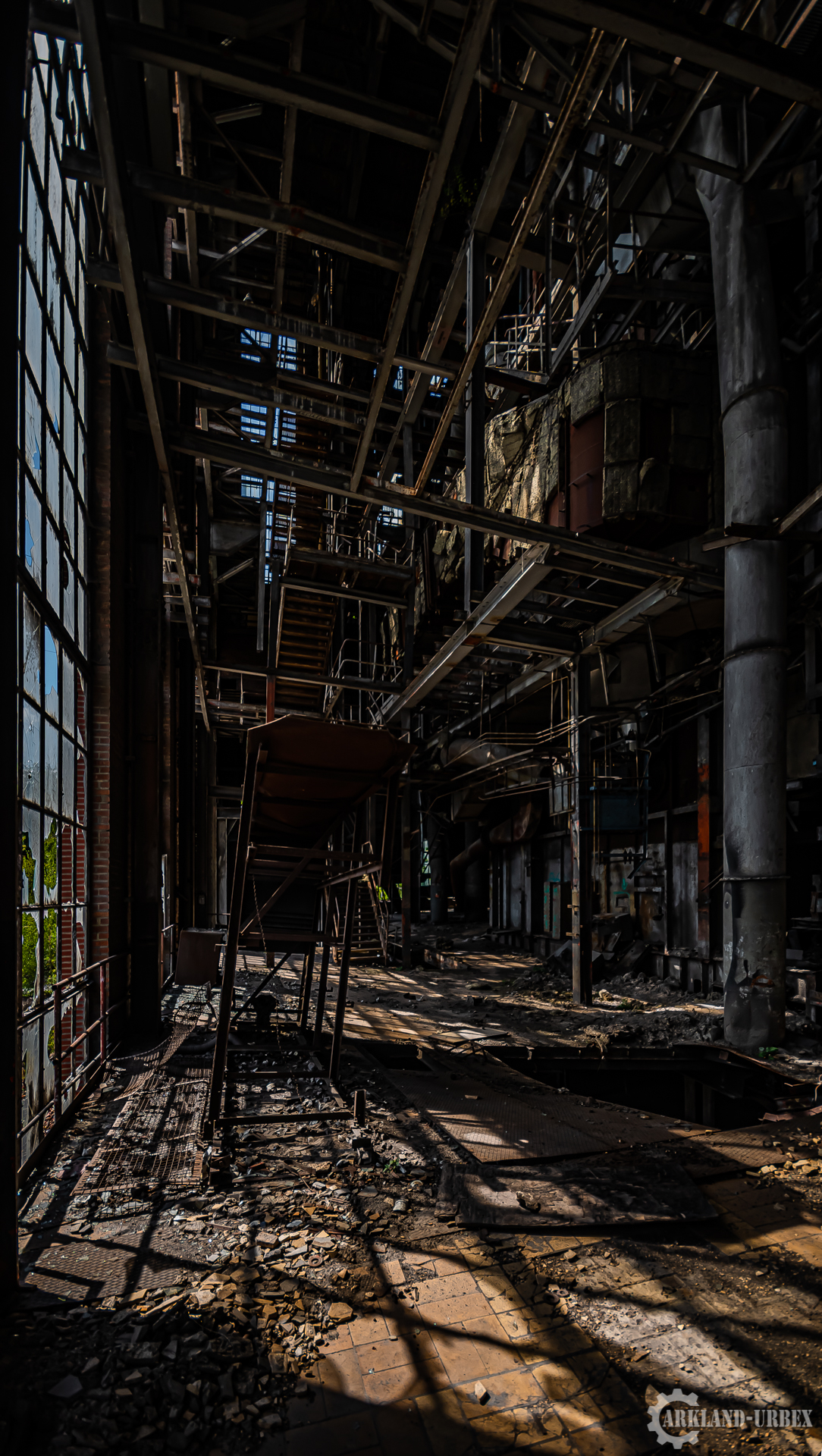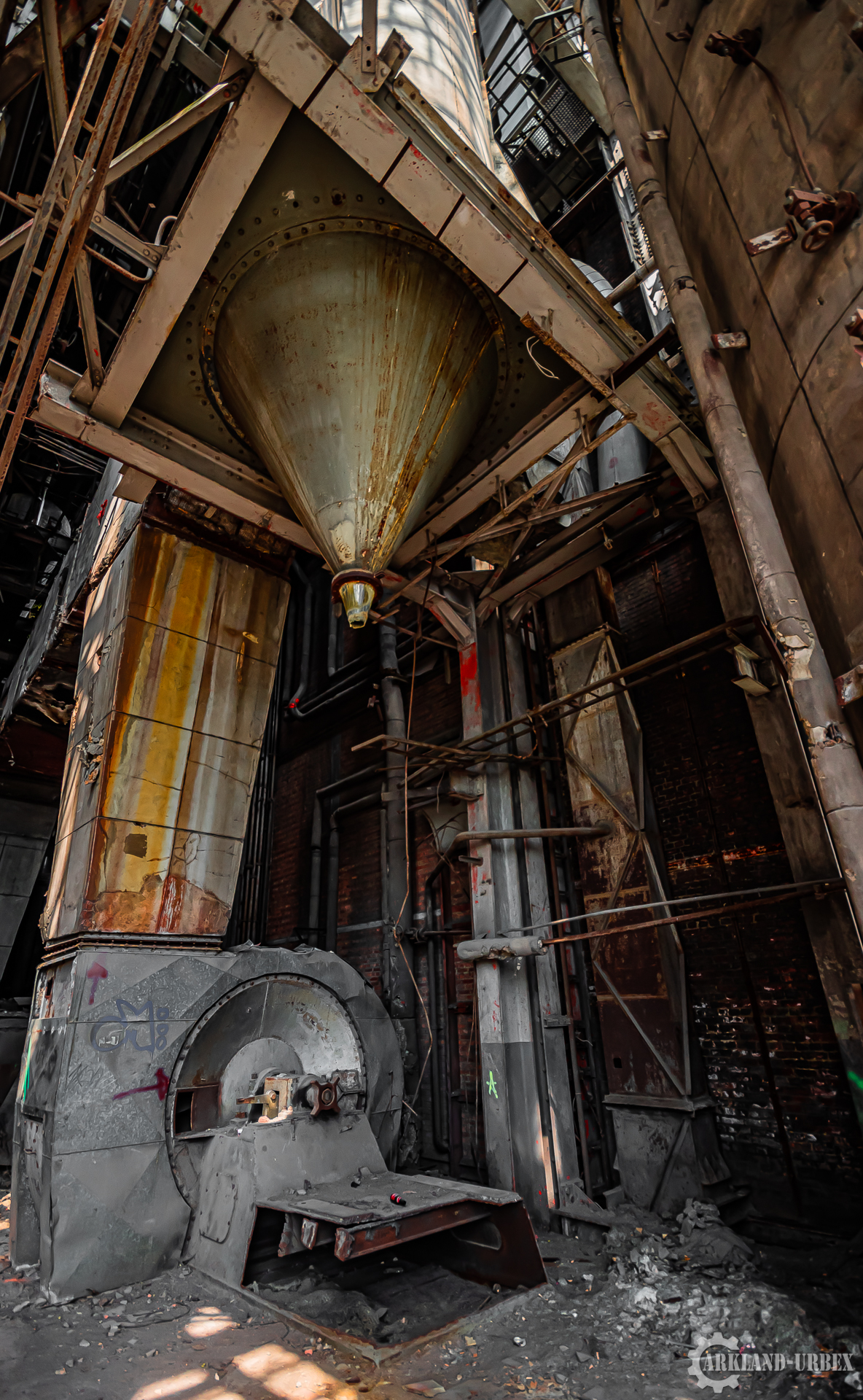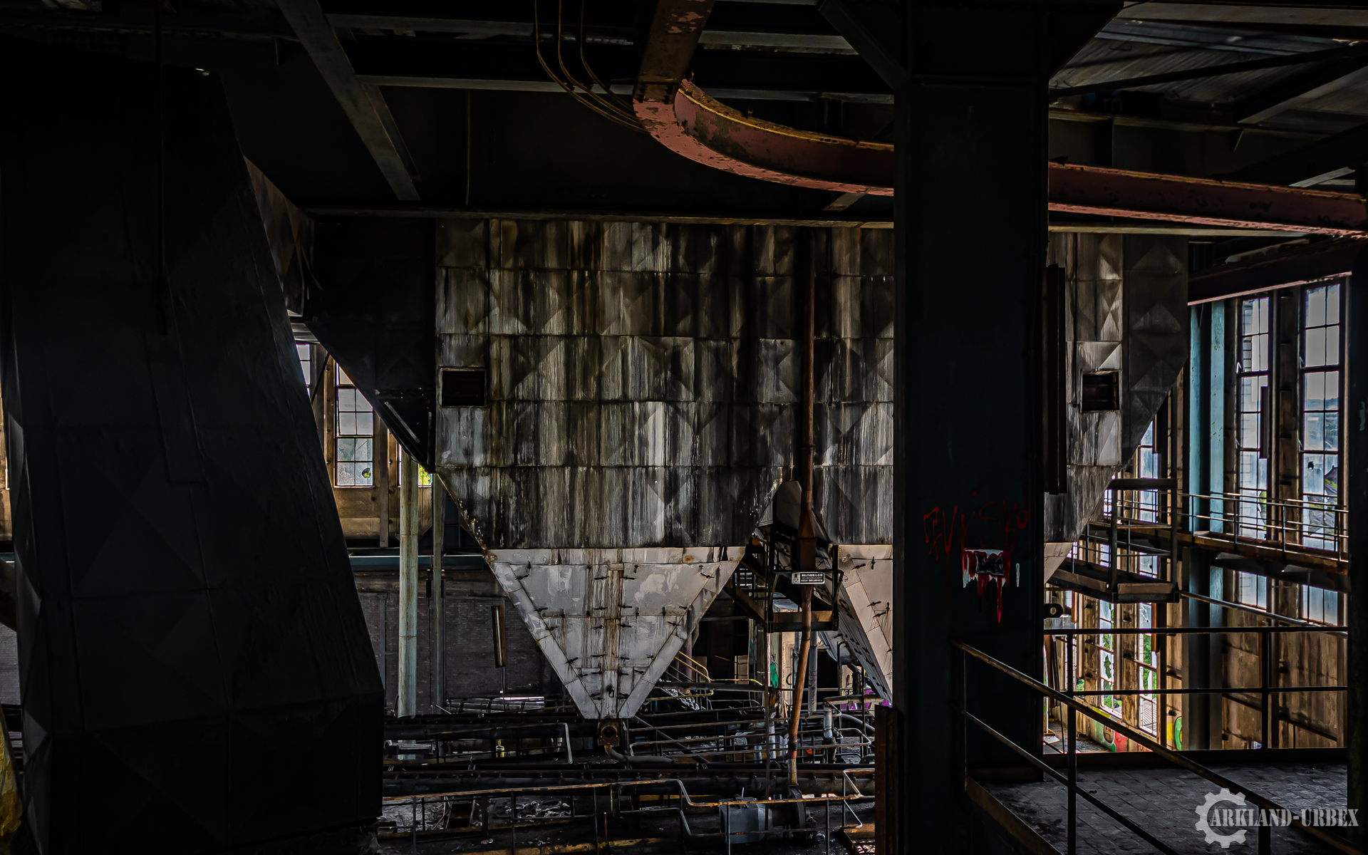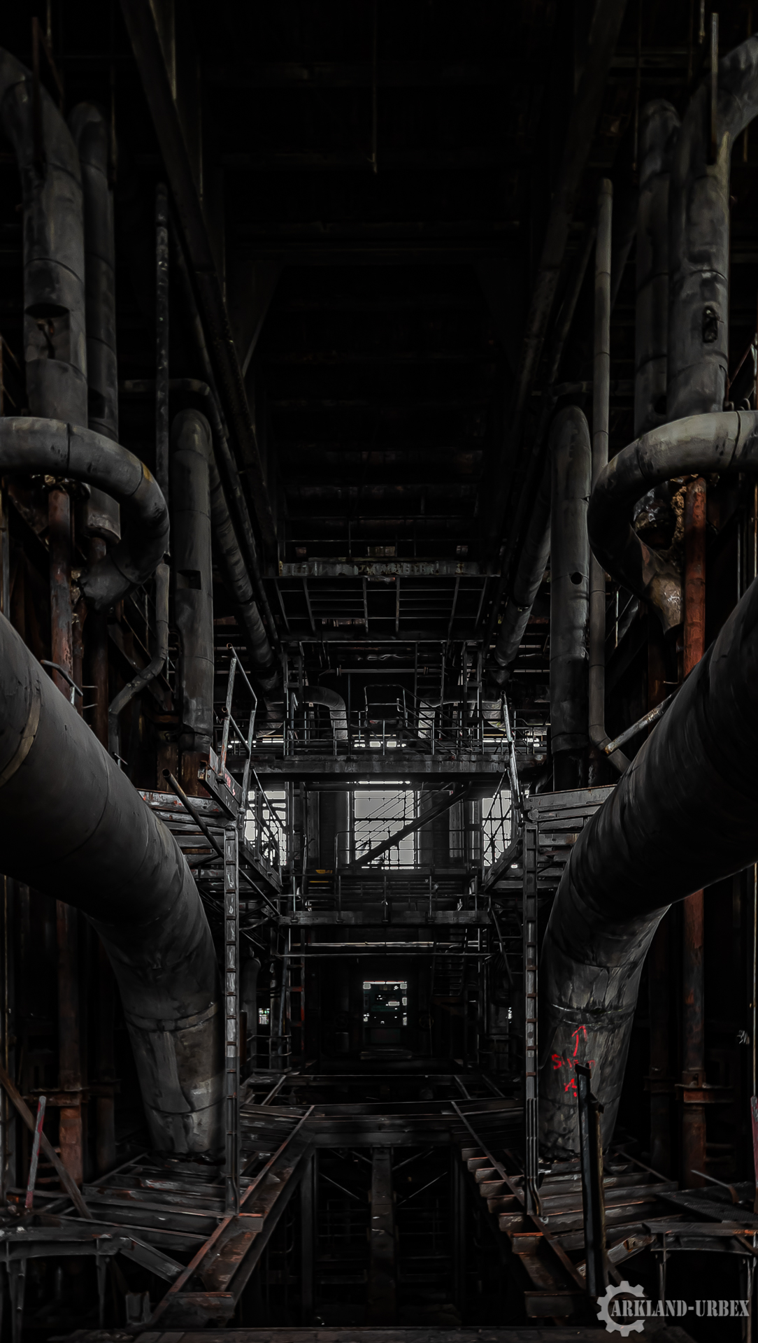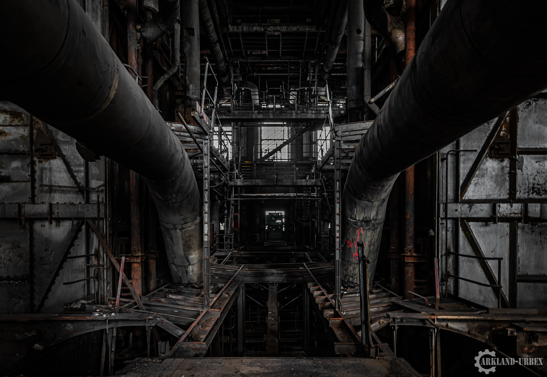L’accès du bâtiment d’ailleurs est très simples encore une fois (open bar), l’intérieur est très vide, tout à été piller il y a peu de temps, mais toutes les machineries sont toujours là, limite encore en état de fonctionnement. Beaucoup d’étages se présentait à nous, mais malheureusement leurs accès était presque tous détruits ou dégradés. Seule une échelle était encore présente mais après celle-ci, c’était un véritable labyrinthe entre les tuyaux, murs et différentes parties de la machinerie.