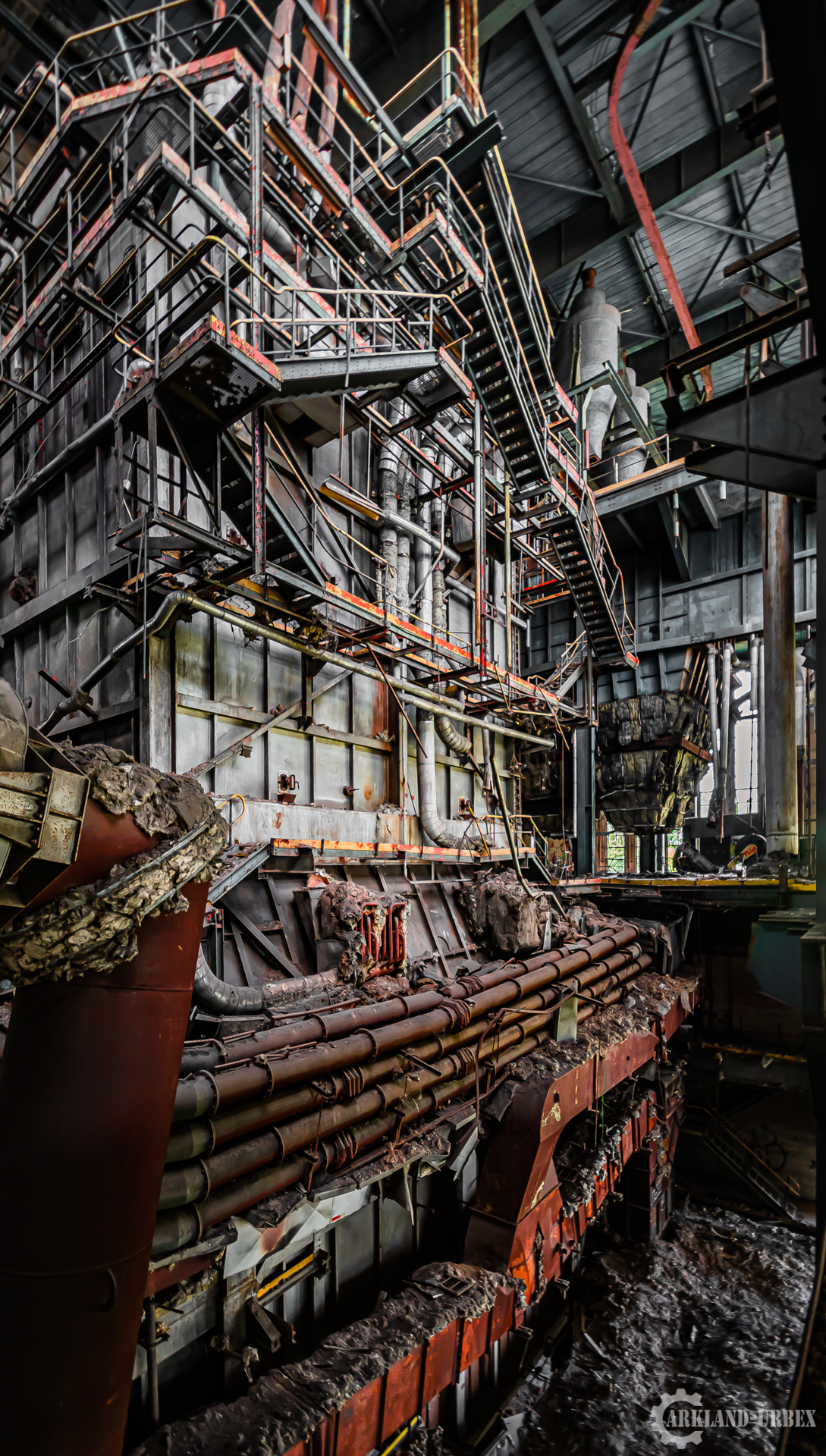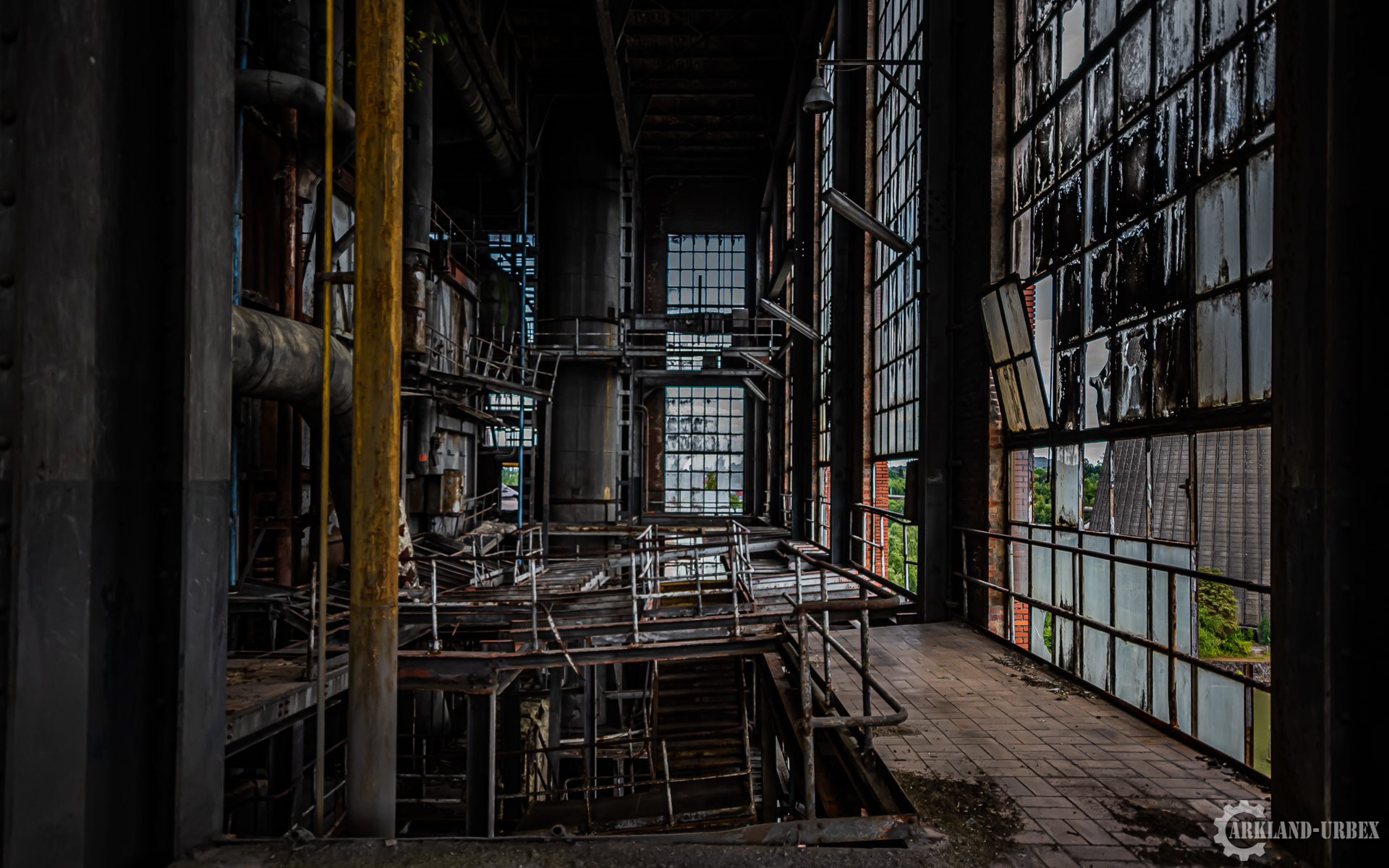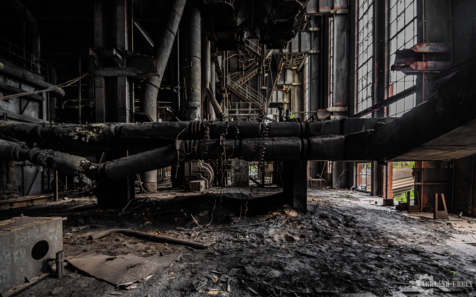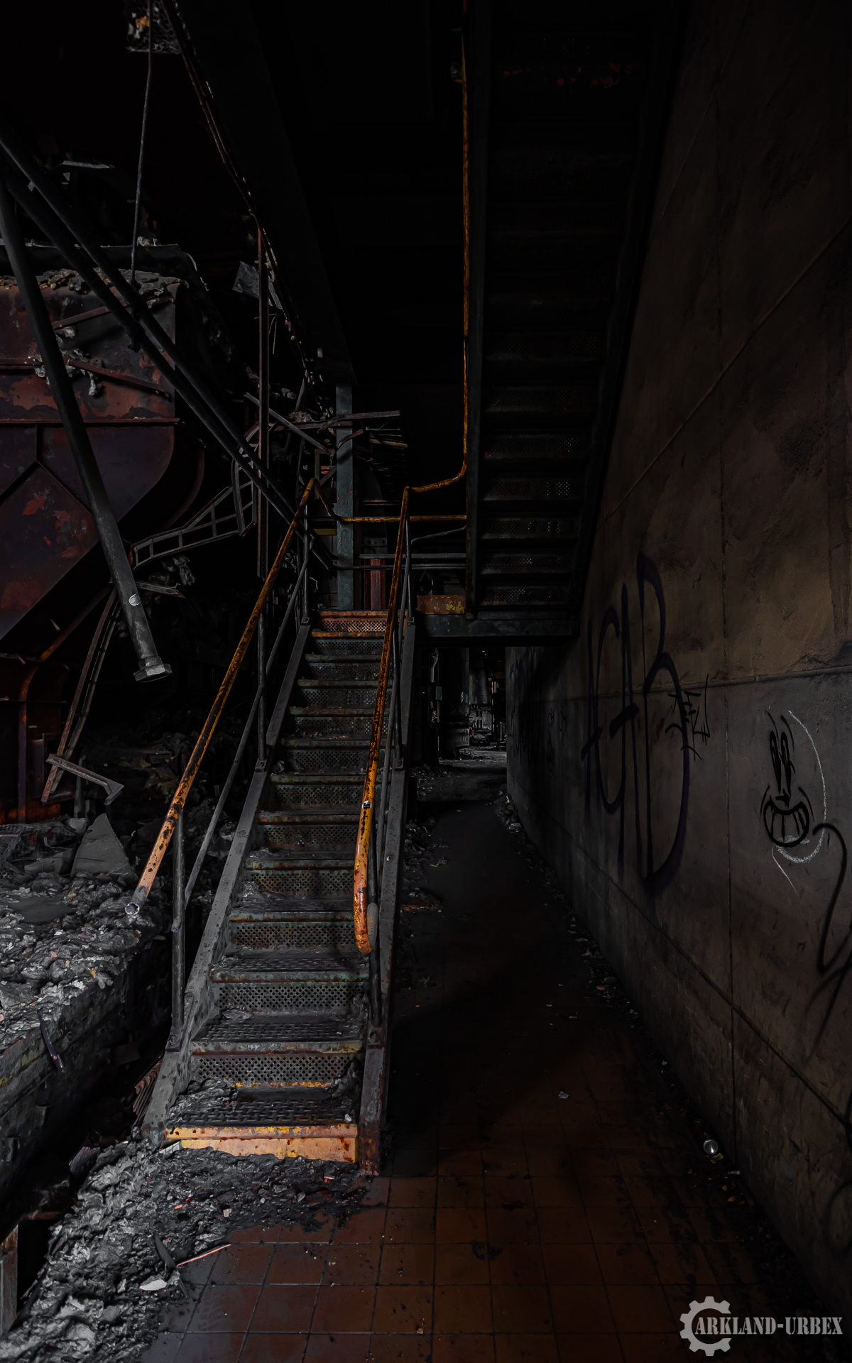L’accès du bâtiment d’ailleurs est très simples encore une fois (open bar), l’intérieur est très vide, tout à été piller il y a peu de temps, mais toutes les machineries sont toujours là, limite encore en état de fonctionnement. Beaucoup d’étages se présentait à nous, mais malheureusement leurs accès était presque tous détruits ou dégradés. Seule une échelle était encore présente mais après celle-ci, c’était un véritable labyrinthe entre les tuyaux, murs et différentes parties de la machinerie.