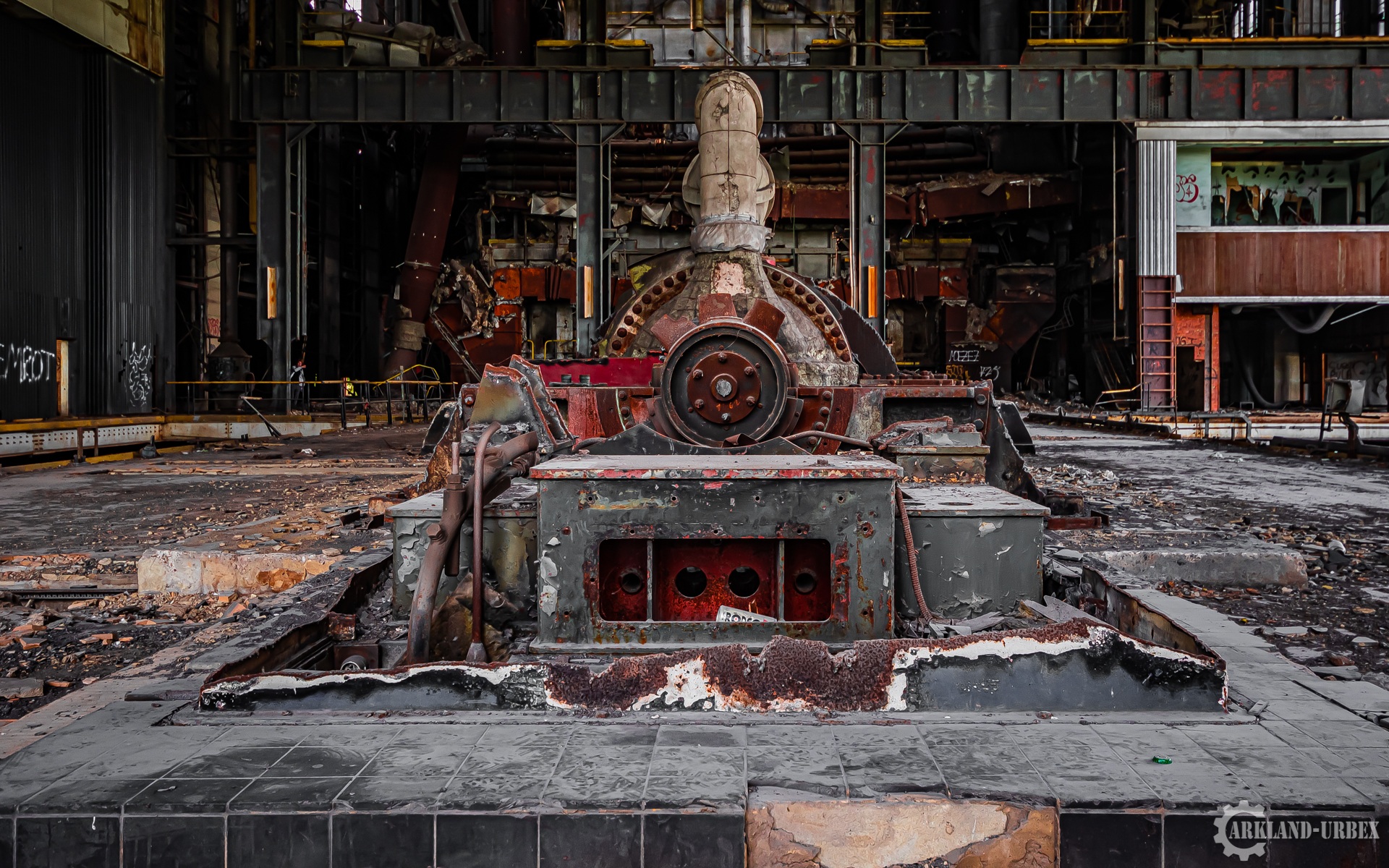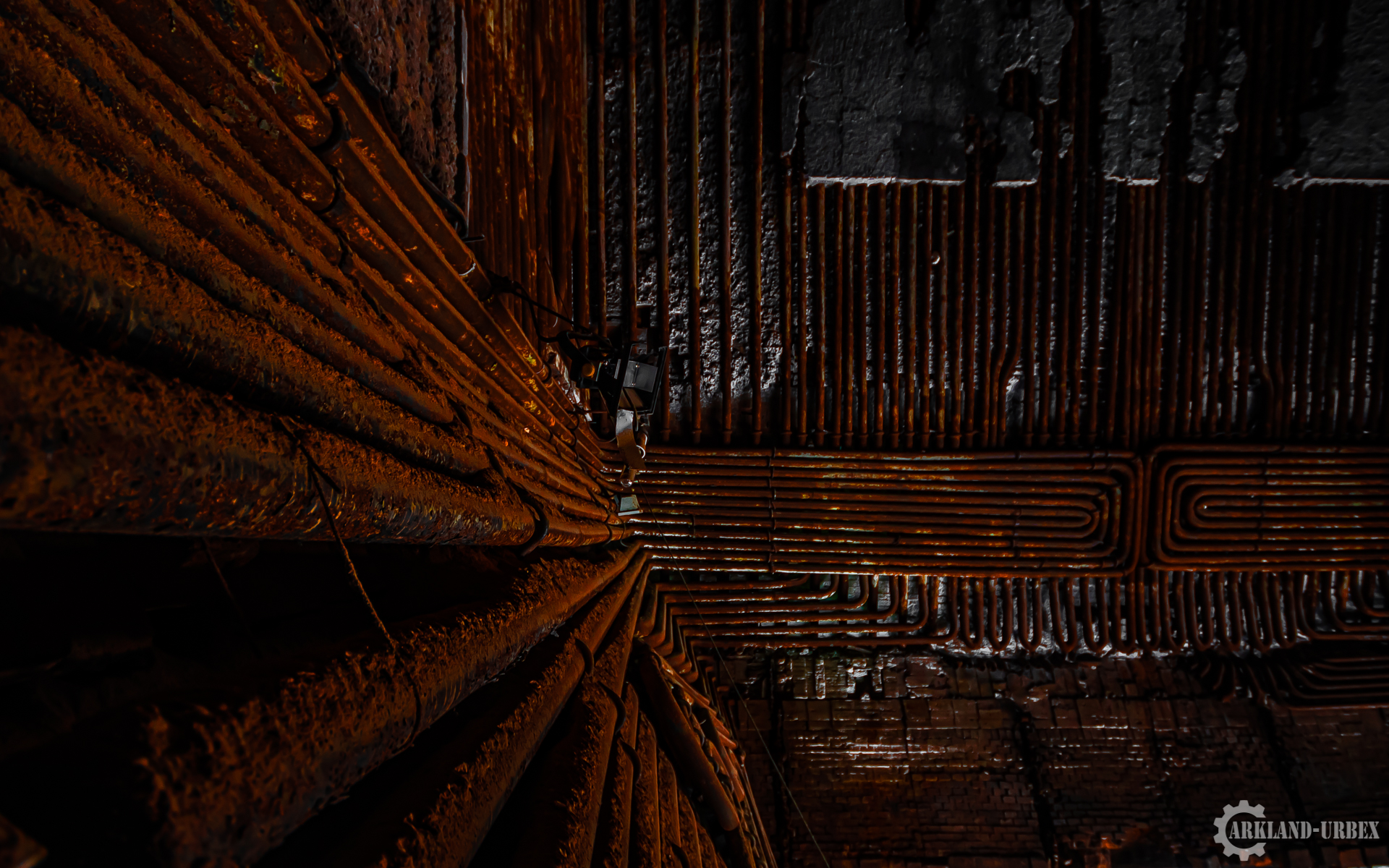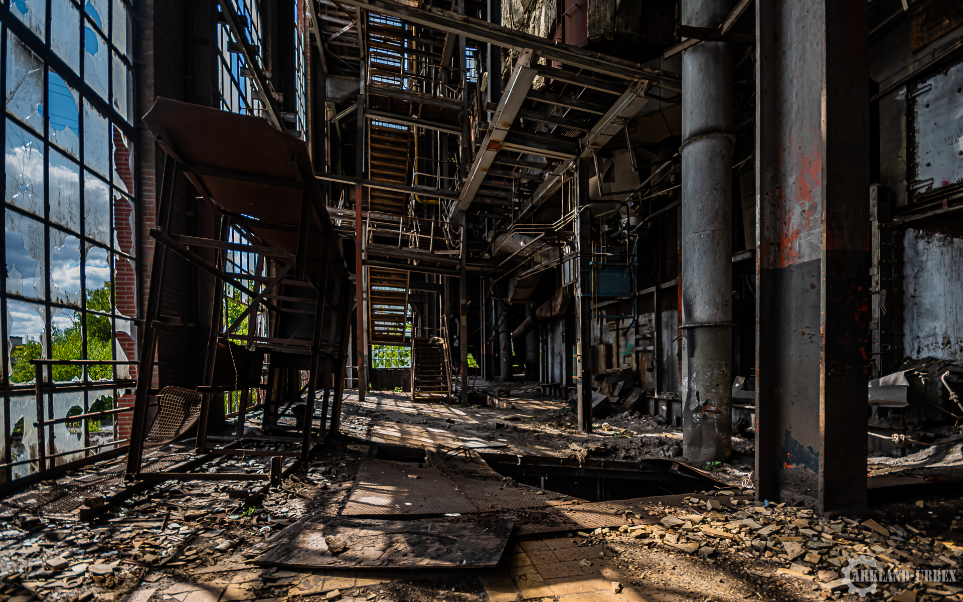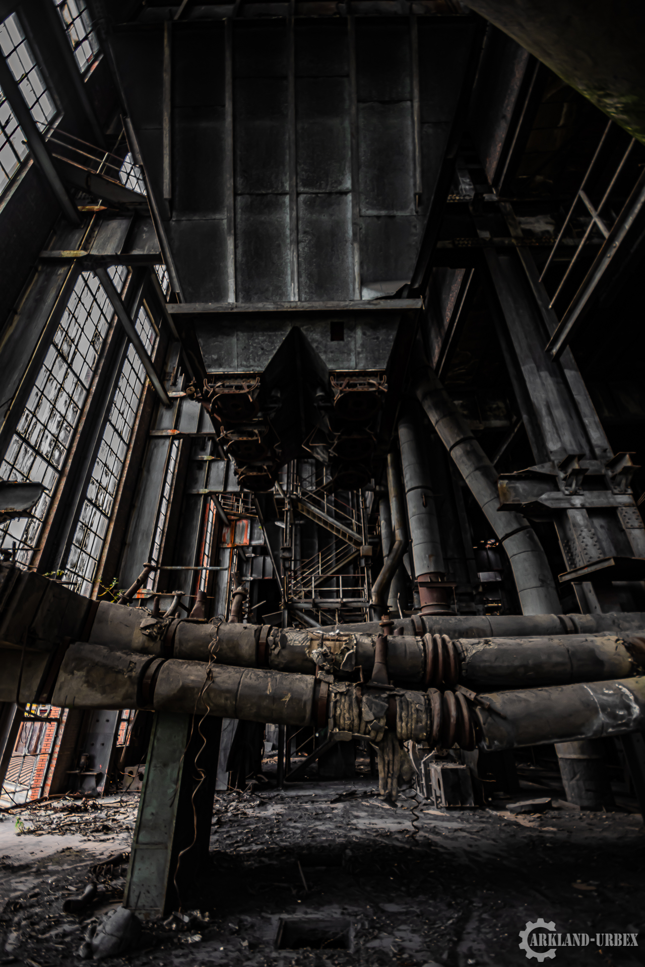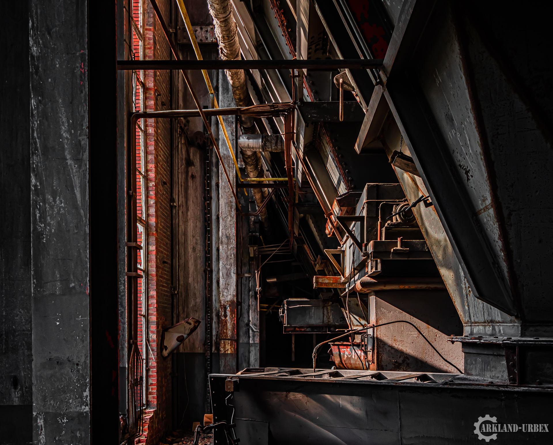 L’accès du bâtiment d’ailleurs est très simples encore une fois (open bar), l’intérieur est très vide, tout à été piller il y a peu de temps, mais toutes les machineries sont toujours là, limite encore en état de fonctionnement. Beaucoup d’étages se présentait à nous, mais malheureusement leurs accès était presque tous détruits ou dégradés. Seule une échelle était encore présente mais après celle-ci, c’était un véritable labyrinthe entre les tuyaux, murs et différentes parties de la machinerie.