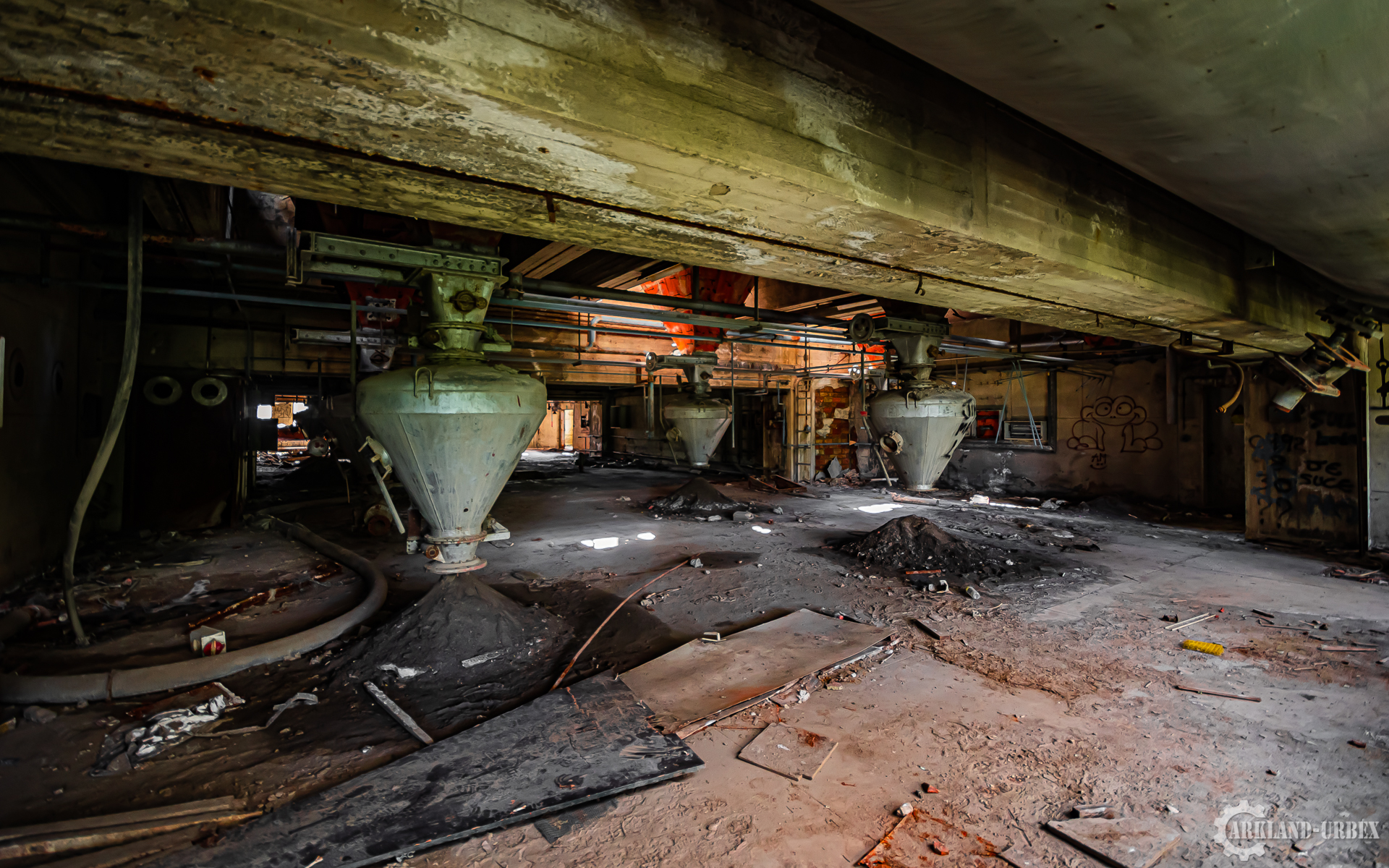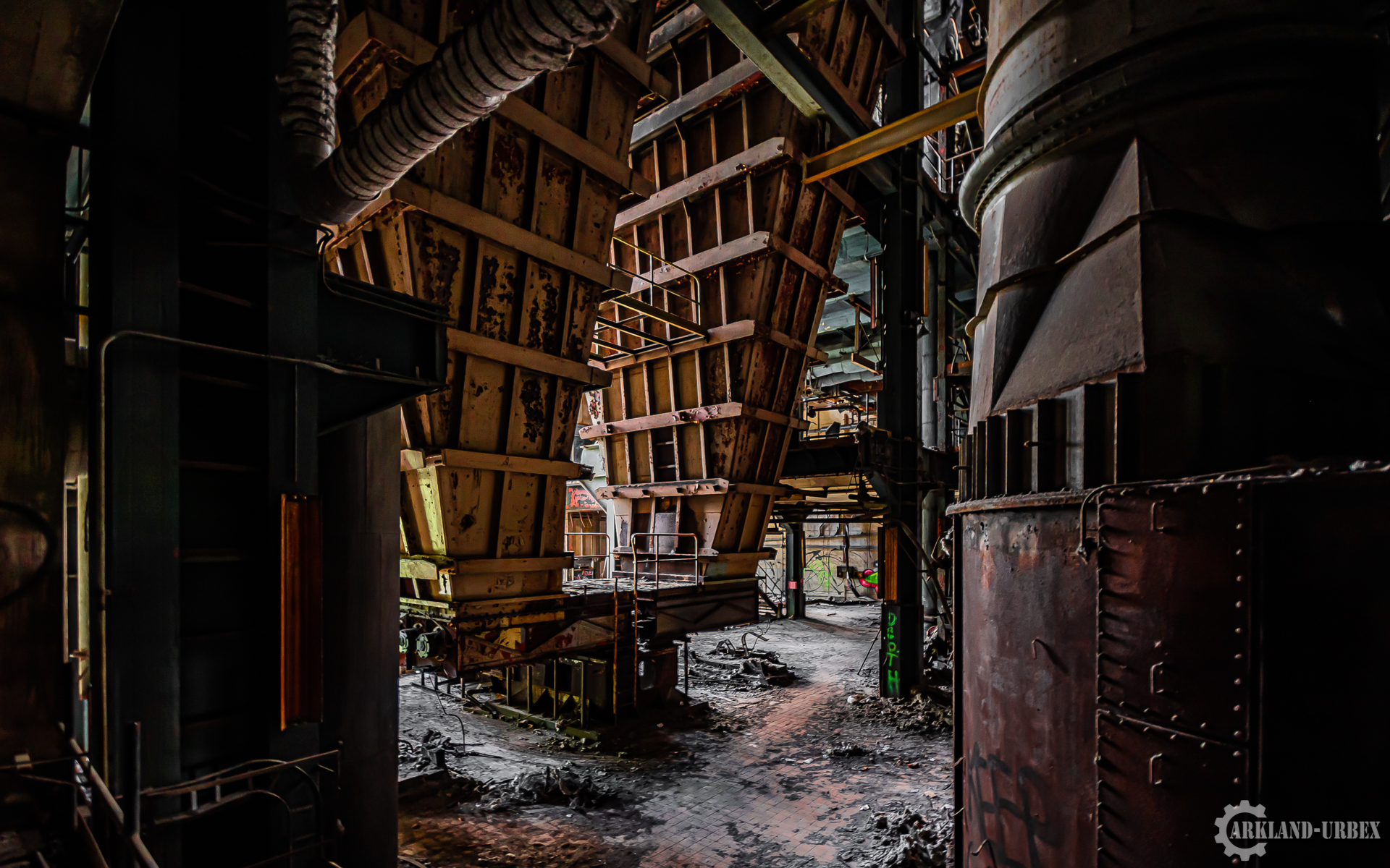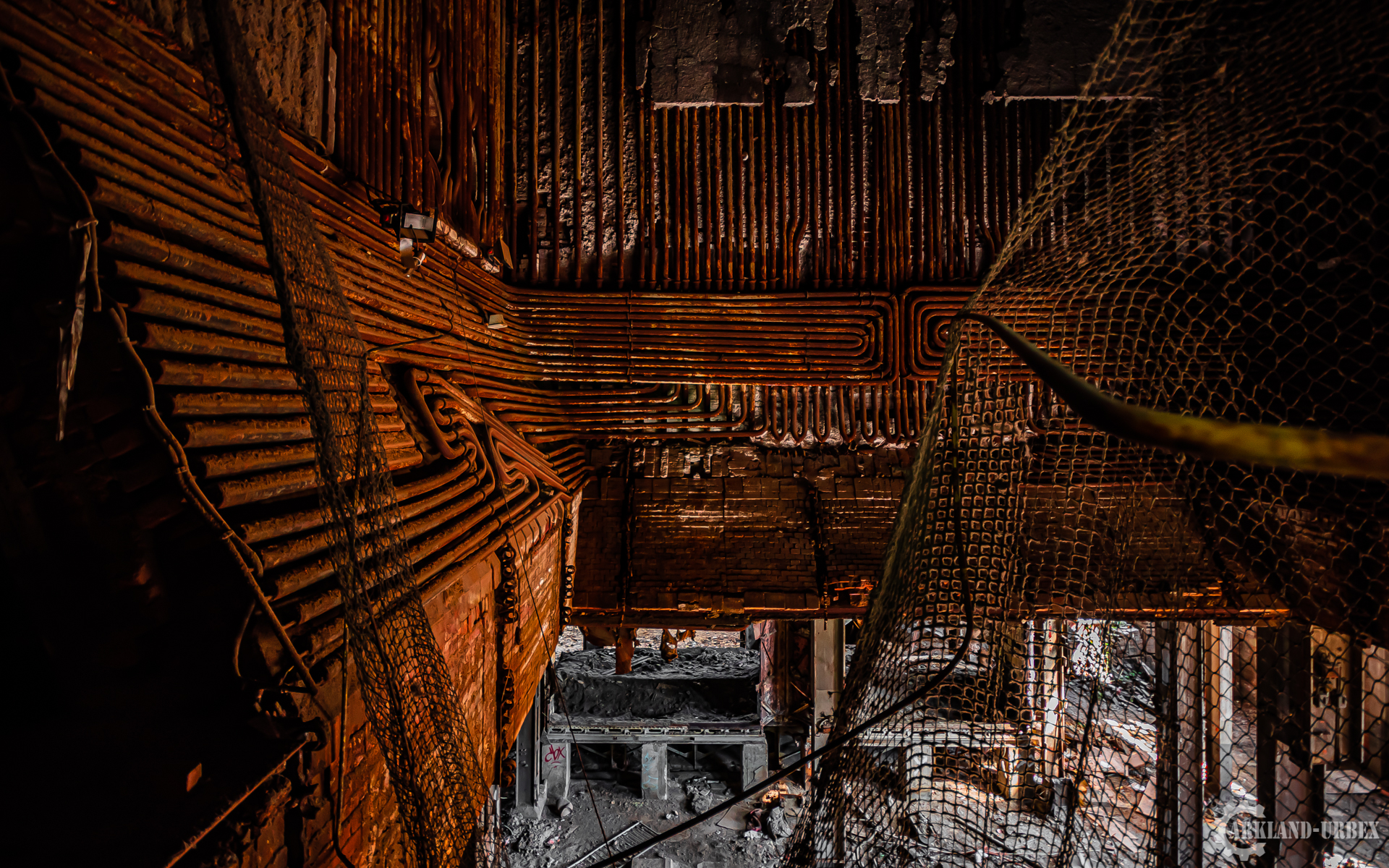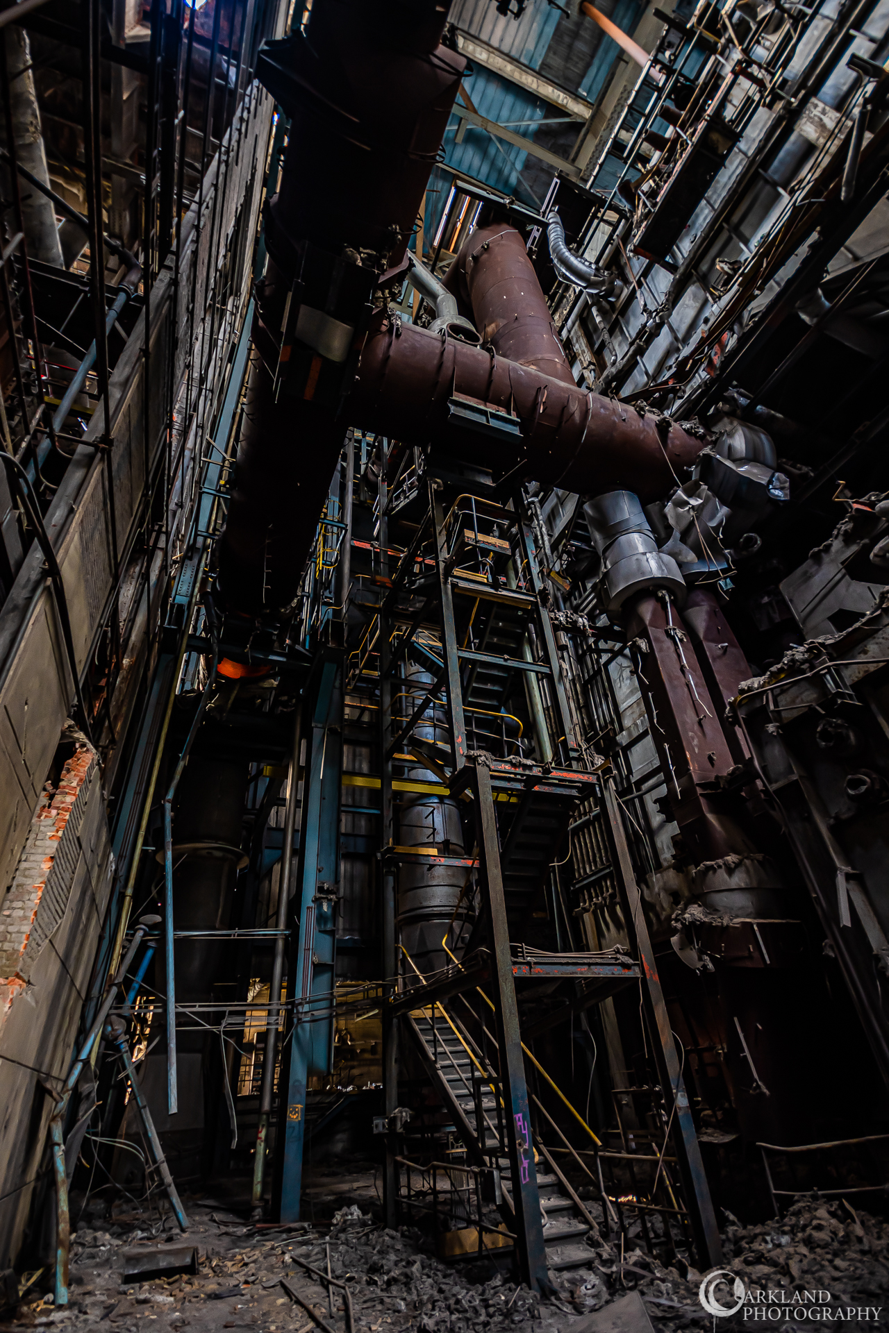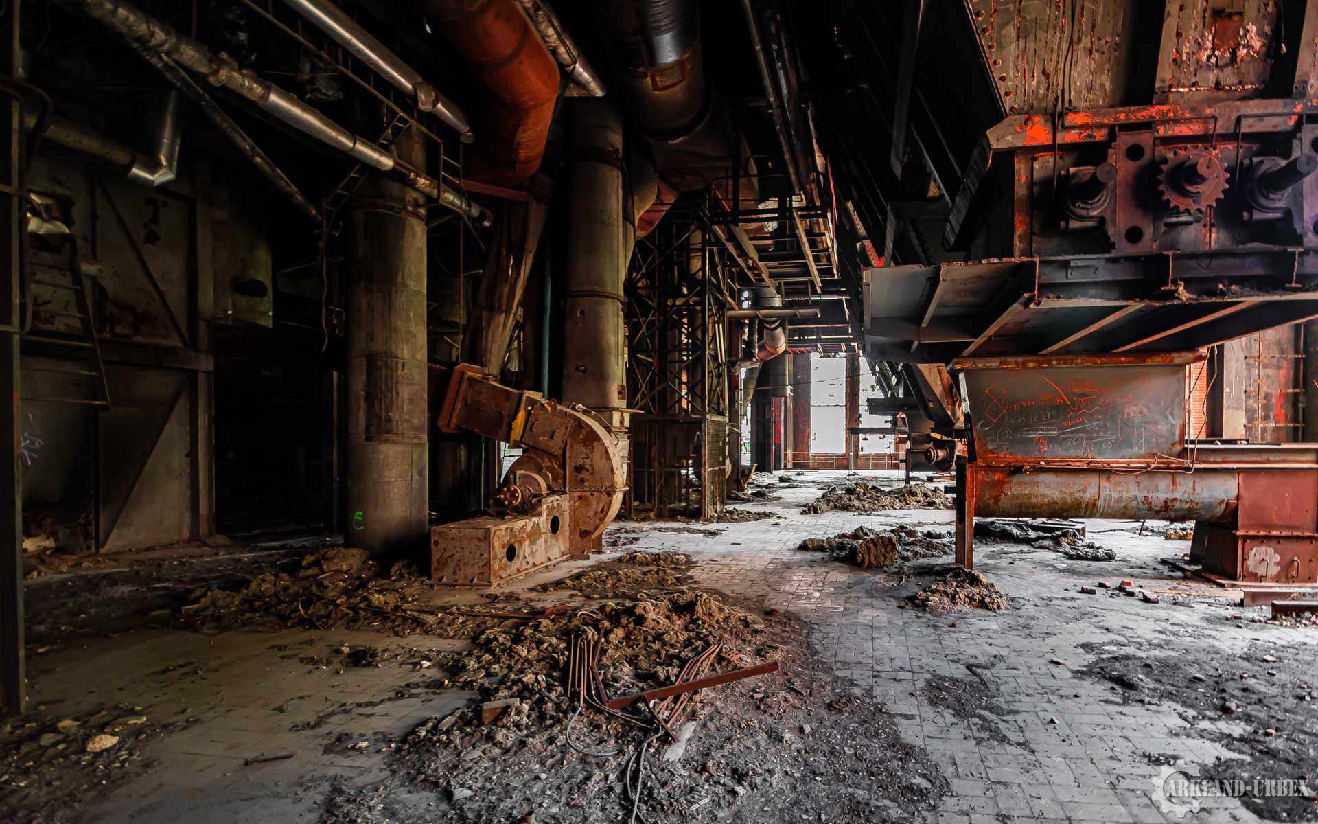 L’accès du bâtiment d’ailleurs est très simples encore une fois (open bar), l’intérieur est très vide, tout à été piller il y a peu de temps, mais toutes les machineries sont toujours là, limite encore en état de fonctionnement. Beaucoup d’étages se présentait à nous, mais malheureusement leurs accès était presque tous détruits ou dégradés. Seule une échelle était encore présente mais après celle-ci, c’était un véritable labyrinthe entre les tuyaux, murs et différentes parties de la machinerie.