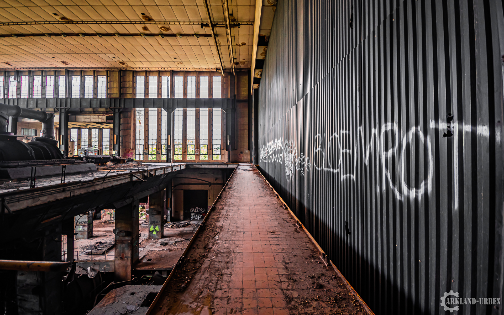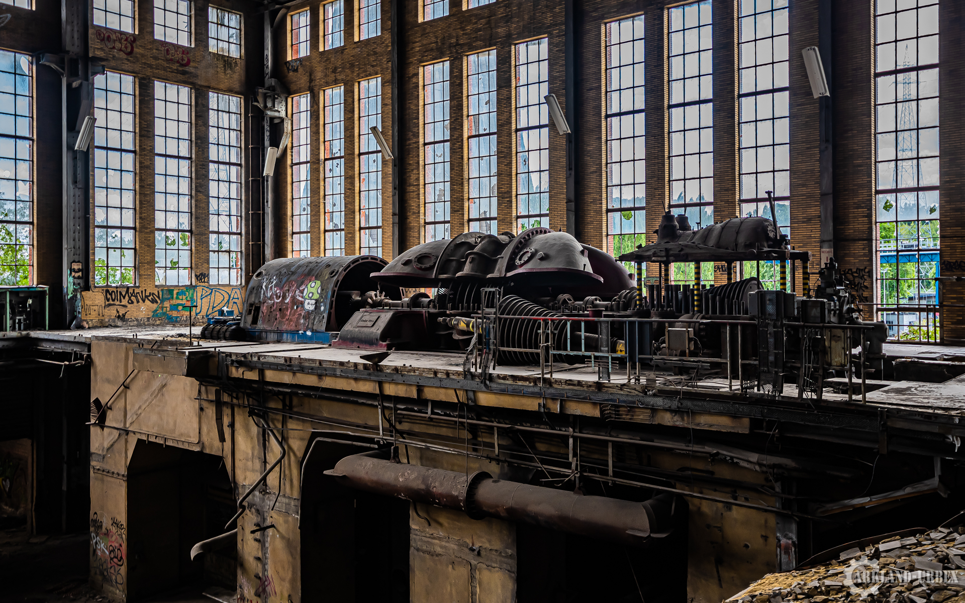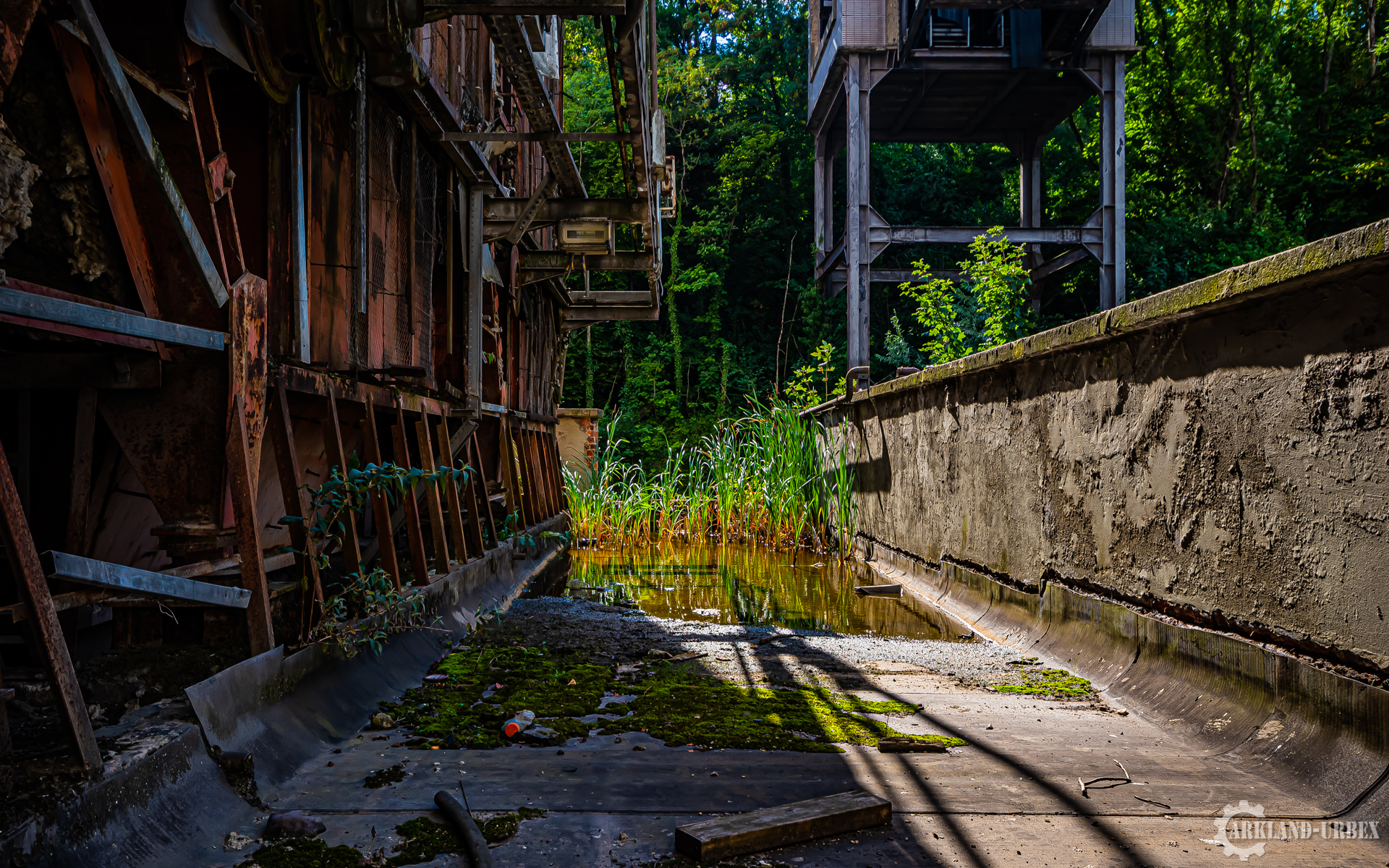 Cette centrale électrique est assez connue dans le milieu de l’urbex, surtout grâce à son imposante tour de refroidissement. Lorsque l’on commence par explorer les bâtiments de la centrale, il faut ensuite parcourir 1 km de route pour accéder à la tour. En effet, les bâtiments et la tour sont séparés par un canal qui ne comporte aucun pont. Le bâtiment principal rassemble toutes les machineries, bureaux, et autres locaux. Dès le premier passage on est abasourdis par le nombre de tuyaux, passages et autres qui chevauchent les côtés du bâtiment (sans parler de la cheminée en brique qui en impose). L’entrée du premier bâtiment se fait grâce à un trou dans le bas d’un mur. Aux alentours de la centrale électrique, on s’aperçoit nettement que la nature a repris ses droits. Bien que certaines personnes confondent ce lieu avec une décharge, la végétation y est abondante.