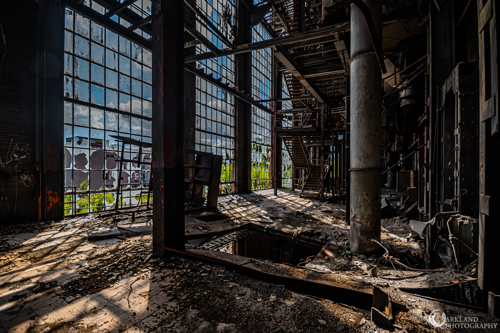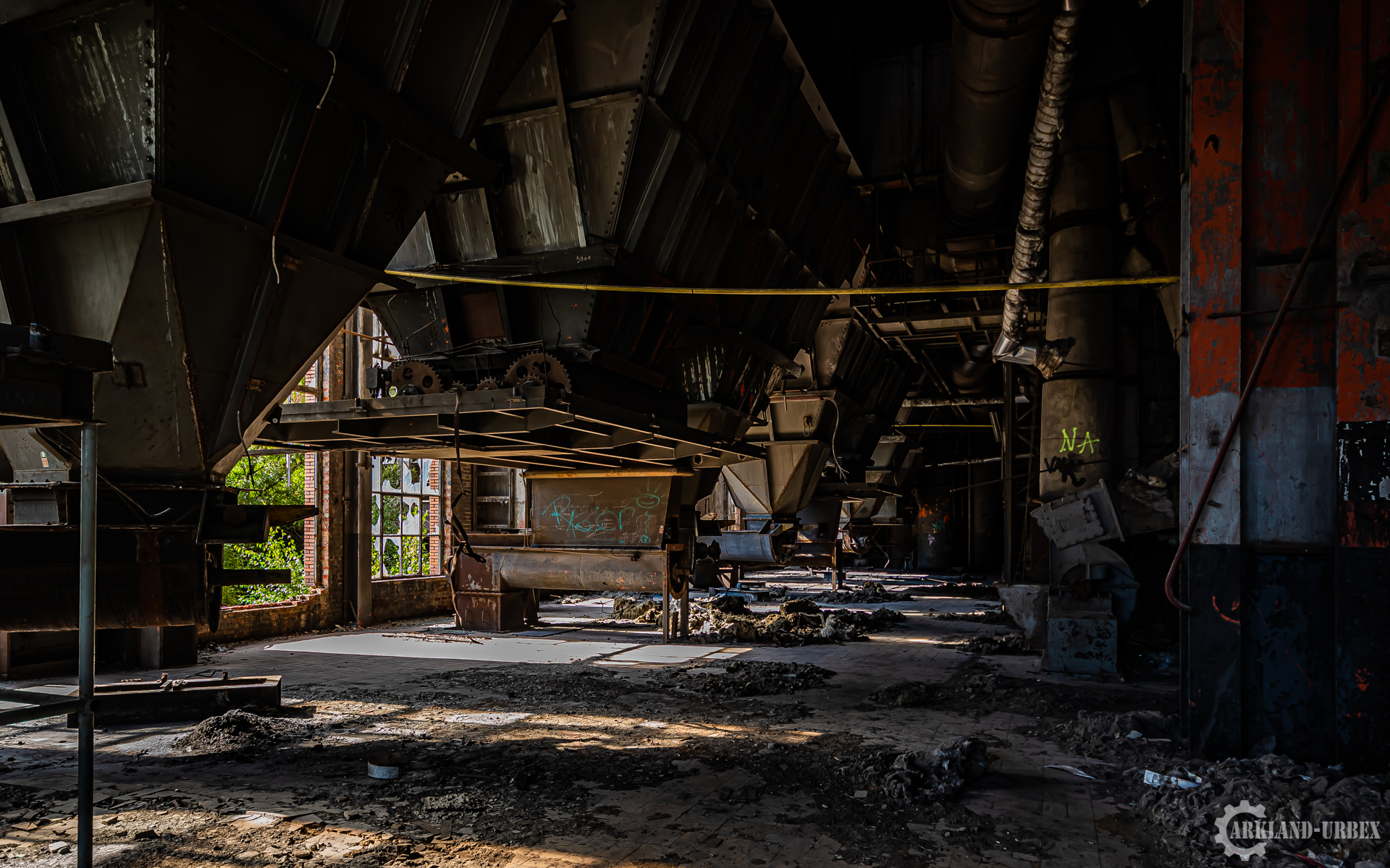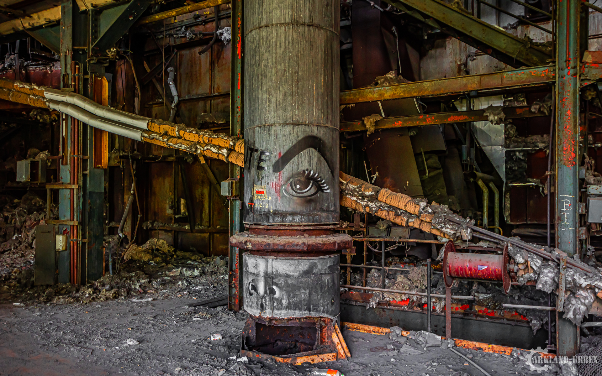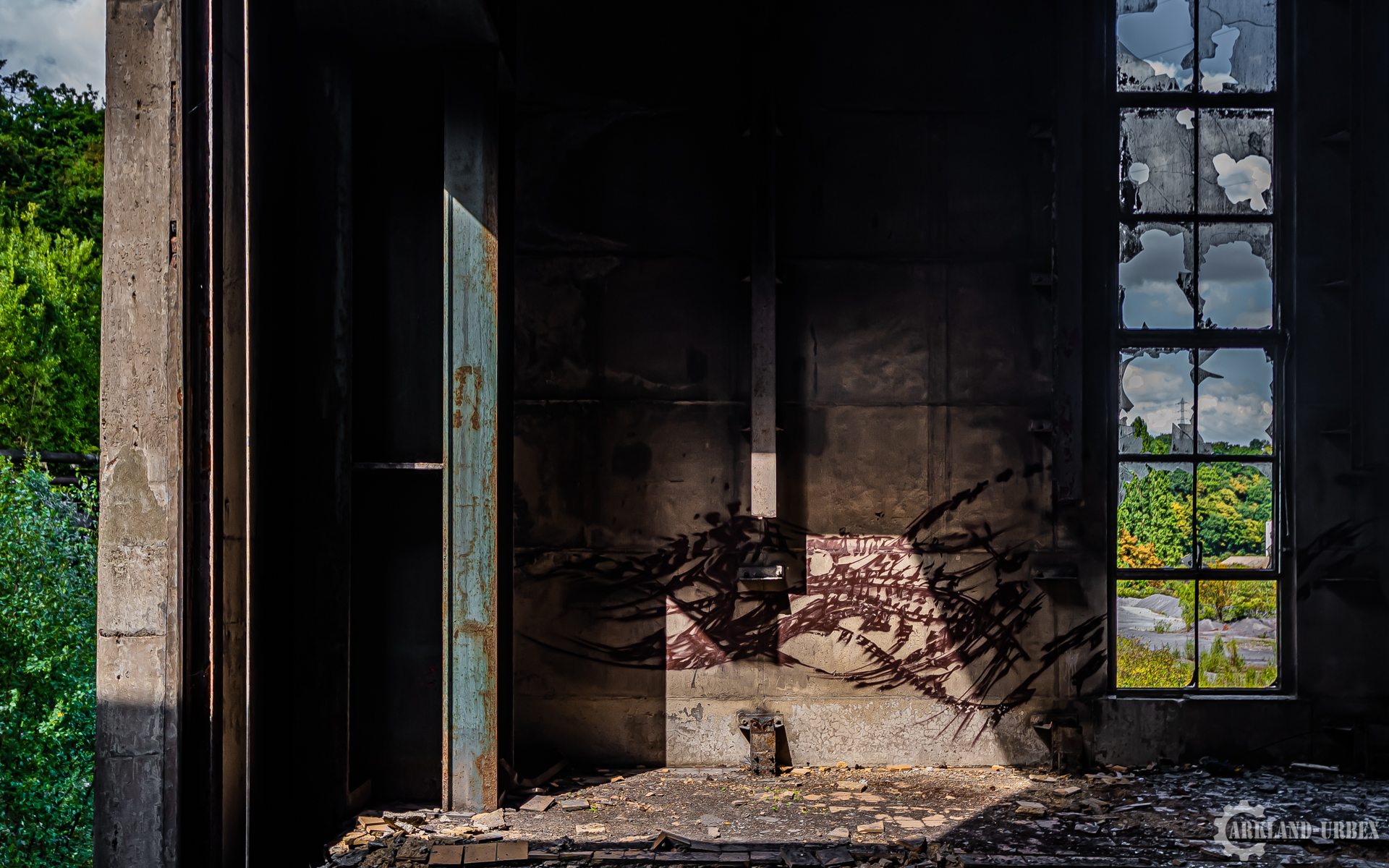 Cette centrale électrique est assez connue dans le milieu de l’urbex, surtout grâce à son imposante tour de refroidissement. Lorsque l’on commence par explorer les bâtiments de la centrale, il faut ensuite parcourir 1 km de route pour accéder à la tour. En effet, les bâtiments et la tour sont séparés par un canal qui ne comporte aucun pont. Le bâtiment principal rassemble toutes les machineries, bureaux, et autres locaux. Dès le premier passage on est abasourdis par le nombre de tuyaux, passages et autres qui chevauchent les côtés du bâtiment (sans parler de la cheminée en brique qui en impose). L’entrée du premier bâtiment se fait grâce à un trou dans le bas d’un mur. Aux alentours de la centrale électrique, on s’aperçoit nettement que la nature a repris ses droits. Bien que certaines personnes confondent ce lieu avec une décharge, la végétation y est abondante.