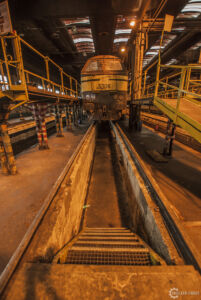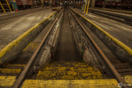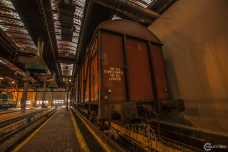 L’urbex, malgré son intérêt à privilégier les lieux abandonnés, ça reste aussi orienté vers les lieux interdits d’accès… C’est ici le cas avec cet hangar qui, en premier temps, paraissait abandonné mais qui s’est révélé encore utilisé, comme on peut le remarquer sur les différents reportages photos sur le web, différents trains tournent, ainsi que l’électricité est toujours active (qui n’est pas forcement un signe de non-abandon).