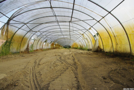 L’exploration en elle-même est assez rapide, mais aussi bien risqué, car la moitié du site et certains accès aux serres sont directement exposé à la rue. C’est une suite de six serres dont cinq font au moins 100 mètres de long. La moitié d’entre-elle sont vide, on s’enfonce littéralement dans la terre, vu qu’elle est à l’abri des intempéries. Les autres possèdent des tables de pousse encore bien garnies en terreau, remorque et diverses choses et outils de jardinage. D’un côté, une ancienne fermette assez classieuse, avec son petit tracteur, on aurait pu la visiter mais sous alarme, donc le moindre pas de travers la fait sonner; et de l’autre, une bien belle maison des mines complètement fermée.